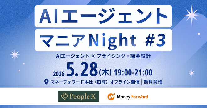 2026年5月28日、マネーフォワード本社にてAIエージェント × プライシング・課金設計をテーマに開催。